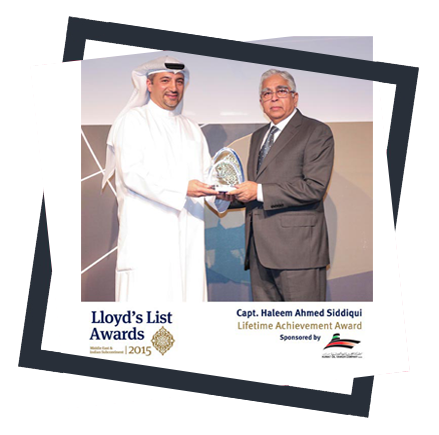 Capt. Haleem Ahmed Siddiqui won the Lifetime Achievement Award at the Lloyd's List Middle East and Indian Subcontinent Awards, presented at the esteemed Armani Hotel Dubai on Wednesday 9th December 2015.